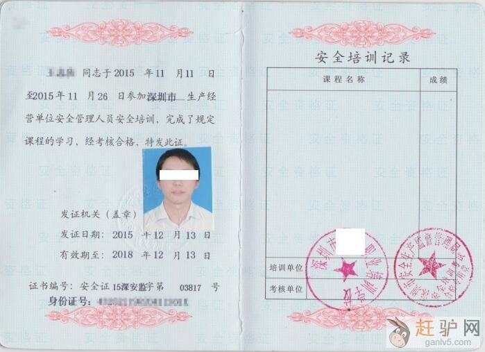 2019年深圳市安全管理人员培训考证流程1. 定义:安全管理人员是指具有一定安全生产知识和安全管理的工作经验,经安全生产监督管理部门考核合格,取得安全管理资格的人员,证书名叫: 安全管理人员证书2. 潜在客户:从事安全,生产,行政人事的人员,3. 适应行业:建筑业、制造业、运输行业等,工厂、生产单位、大型企业等4. 价格:1080元,包含报名费、培训费,书本费(报名领取)、工本费,含补考一次的机会,下次补考交350元g.a.n.l.v.5.c.o.m。5. 缴费方式:报名一次交,开发票加4个税钱;6. 适用范围:全广东省通用,个别其他省份也可以用;7. 颁发单位:深圳市安全生产监督管理局颁发8. 报考条件:满18岁,从事安全生产管理工作满3年9. 报考资料:身份证复印件正反面一张,毕业证复印件一张,一寸红底照片3张,报名表盖章和工作证明盖章,以上资料身份证和照片一定要提供赶+驴+网。10. 报名时间:随时可以报名,根据发证单位每年的考试时间安排11. 培训时间:基于考试时间而定,我们常规安排在考试时间的前几天的集中一天安排培训,培训地点和时间另行通知来源www.ganlv5.com。12. 考试时间和地点:以准考证为准,考试前一个礼拜领取准考证,本地考试出证时间:考试后10个工作日出成绩,2个月后出证