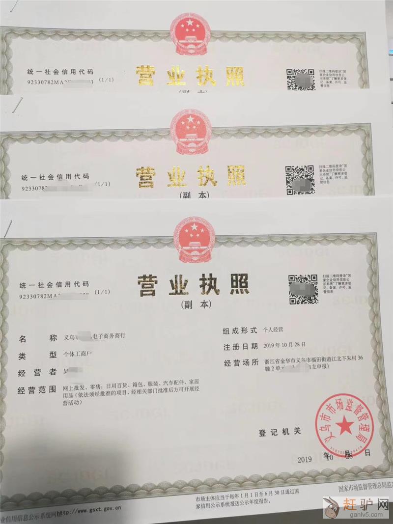 3)个体户名称:随机核名取名,如义乌市XX商行/义乌市XX电子商务商行赶驴网www.ganlv5.com。
